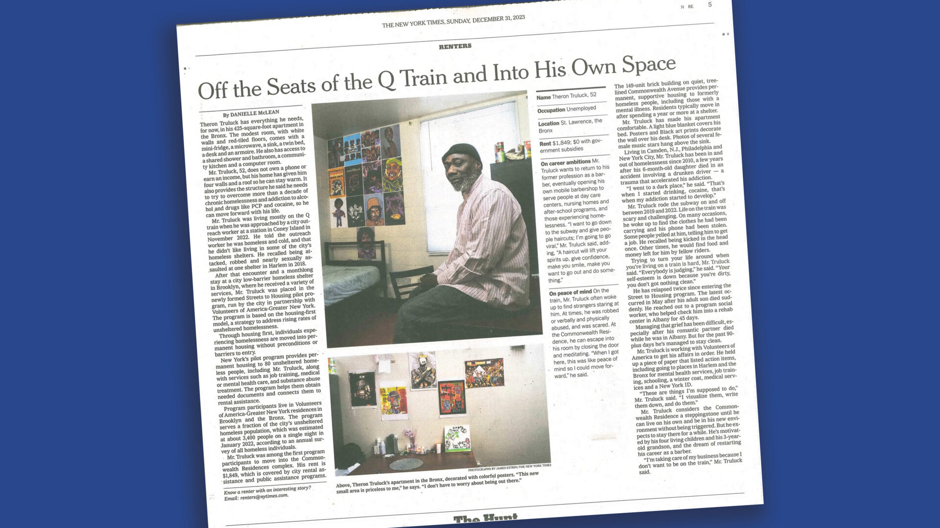 An article in the New York Times features 52-year-old Theron Truluck, a VOA-GNY client living at Commonwealth Residence. After years of street homelessness, Mr. Truluck found his new home through our Street to Home pilot program.